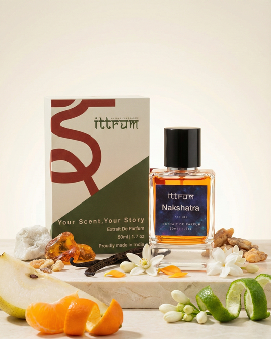 Nakshatra is a radiant expression of modern femininity—complex, luminous, and commanding. Inspired by the paradox of softness and strength, it weaves together sparkling florals, creamy amber, and sensual musk to create a scent that feels both ethereal and empowering. Crafted for women who lead with elegance and leave a lasting impression.